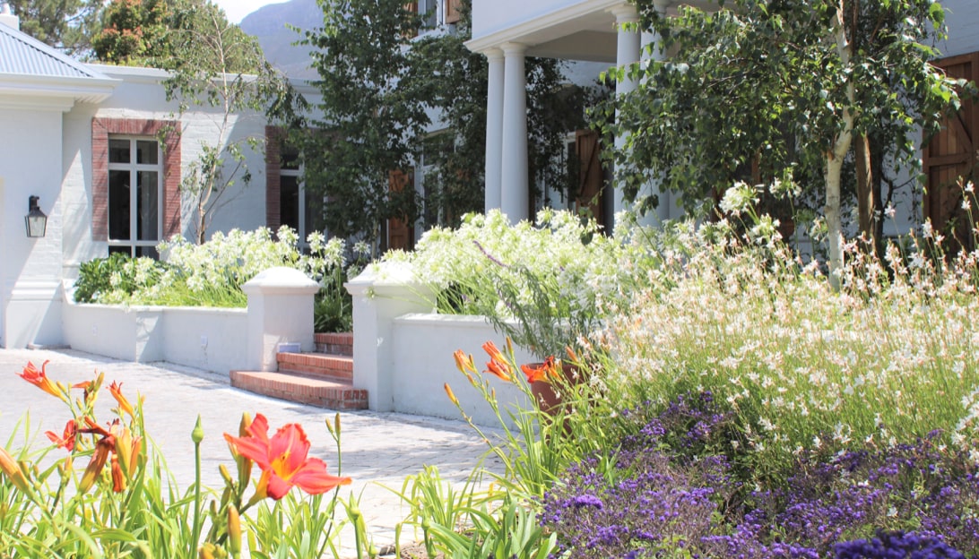 Set in the foothills of the Helderberg Mountains, this structured Old Cape-style country garden with riveting views draws one through walled compartments of orchids, vineyards and beautiful flower beds.
